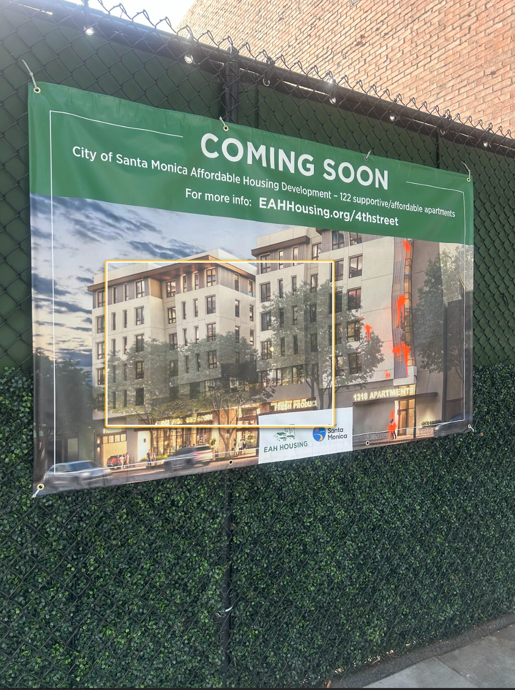 Sign on 4th and Arizona that provides details about the upcoming affordable housing development.